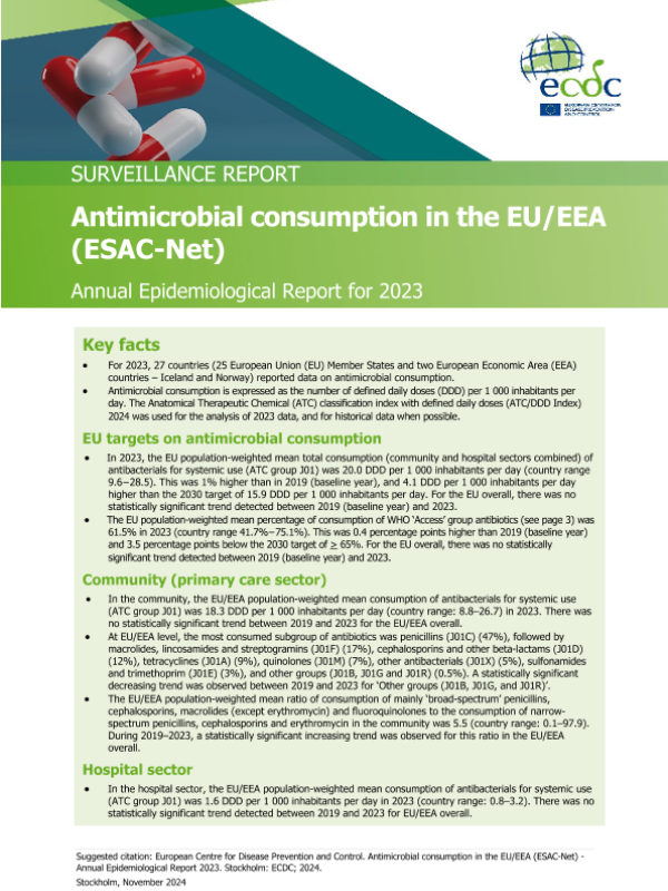 【European Centre for Disease Prevention and Control】【202411】欧洲疾控中心-欧盟-欧洲经济区的抗菌药物消费(ESAC-Net)-2023年年度流行病学报告-25页