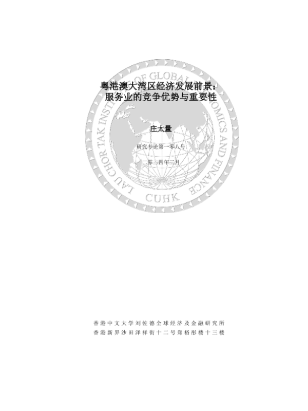 【香港中文大学刘佐德全球经济及金融研究所】【202403】粤港澳大湾区经济发展前景:服务业的竞争优势与重要性-71页