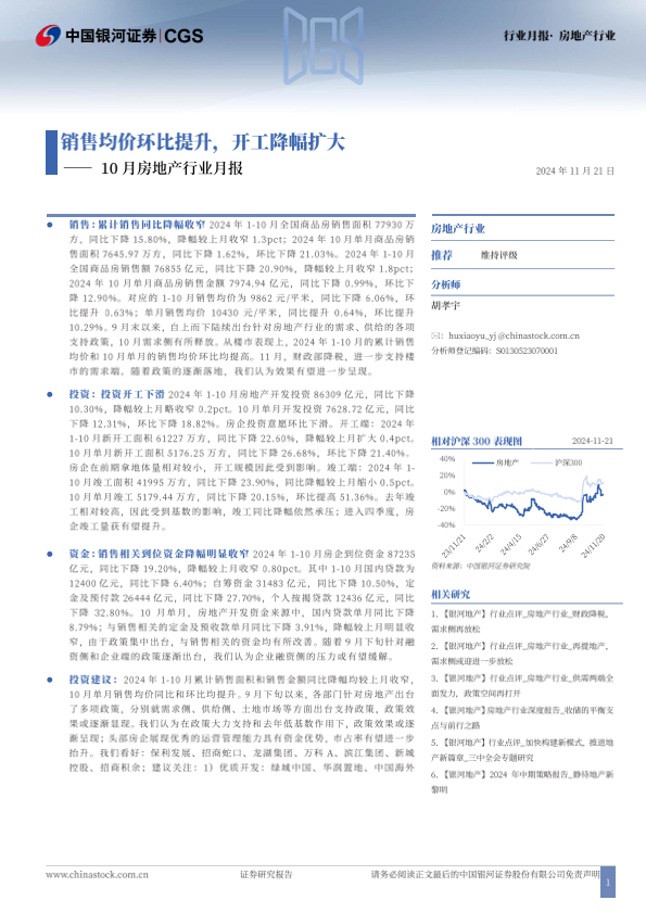 【银河证券】【20241121】10月房地产行业月报:销售均价环比提升,开工降幅扩大-12页