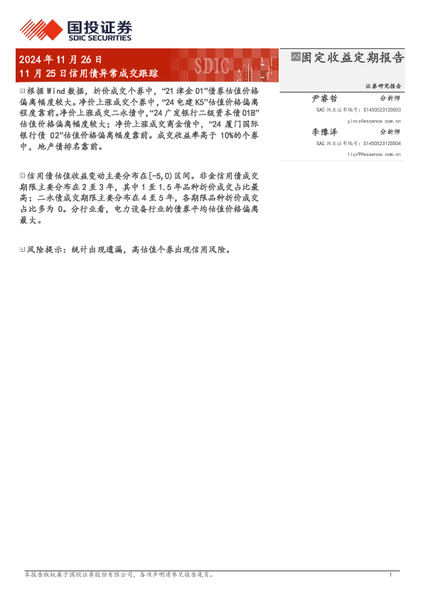 【国投证券】【20241126】11月25日信用债异常成交跟踪-10页