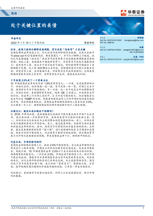 【华泰证券】【20220119】固收深度研究:处于关键位置的美债-16页