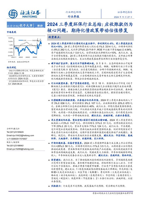【海通证券】【20241127】2024三季度环保行业总结:应收账款仍为核心问题,期待化债政策带动估值修复-48页