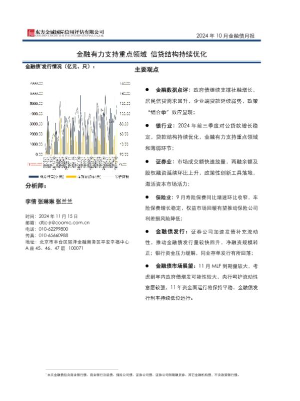 【东方金诚】【20241115】2024年10月金融债月报:金融有力支持重点领域,信贷结构持续优化-11页