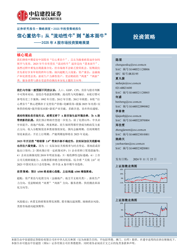 【中信建投证券】【20241125】2025年A股市场投资策略展望:信心重估牛,从“流动性牛”到“基本面牛”-41页