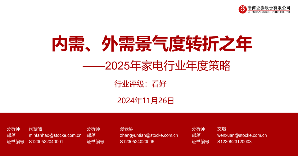 【浙商证券】【20241126】2025年家电行业年度策略:内需、外需景气度转折之年-34页
