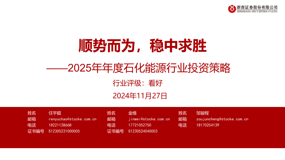 【浙商证券】【20241127】2025年年度石化能源行业投资策略:顺势而为,稳中求胜-42页