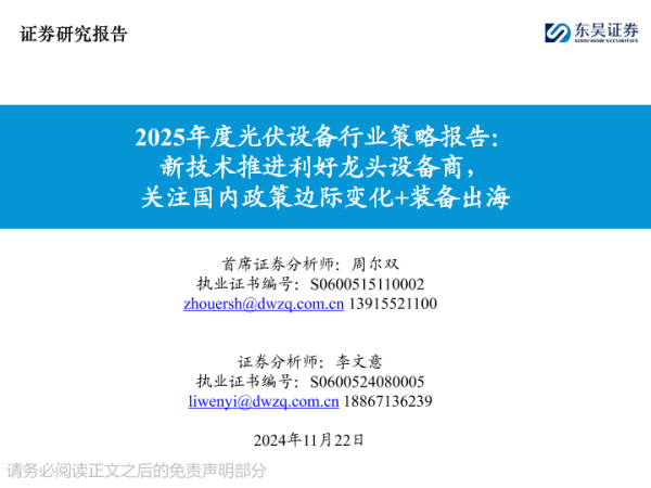 【东吴证券】【20241122】2025年度光伏设备行业策略报告:新技术推进利好龙头设备商,关注国内政策边际变化+装备出海-57页