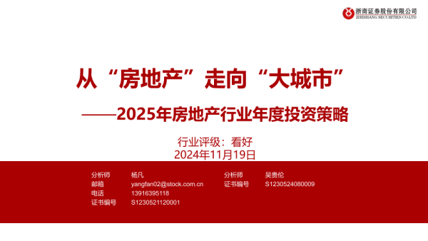 【浙商证券】【20241119】2025年房地产行业年度投资策略:从“房地产”走向“大城市”-51页