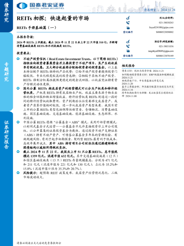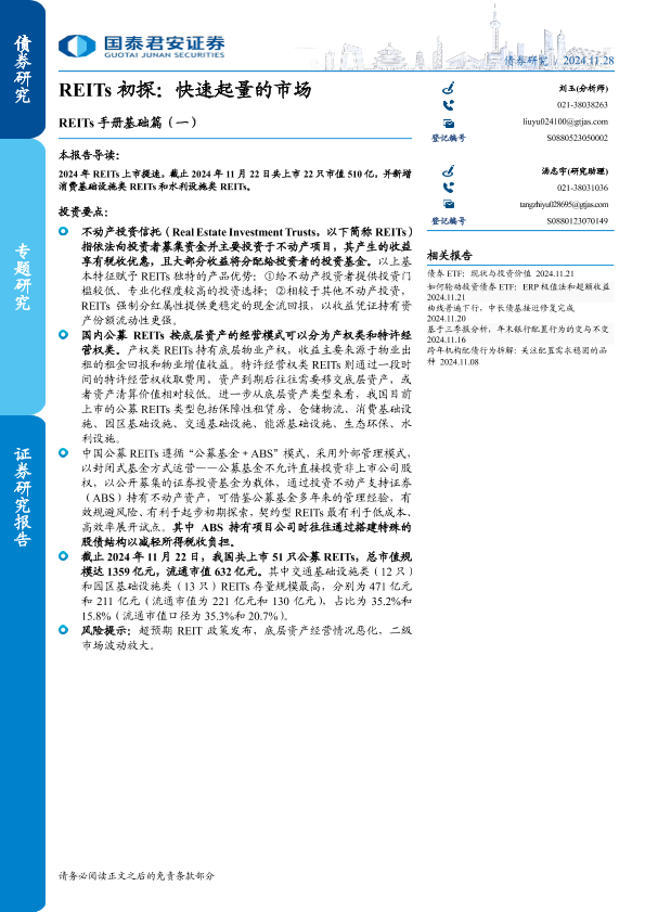 【国泰君安证券】【20241128】REITs手册基础篇(一),REITs初探:快速起量的市场-12页