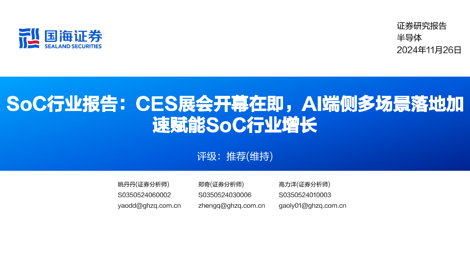 【国海证券】【20241126】SoC行业报告:CES展会开幕在即,AI端侧多场景落地加速赋能SoC行业增长-51页