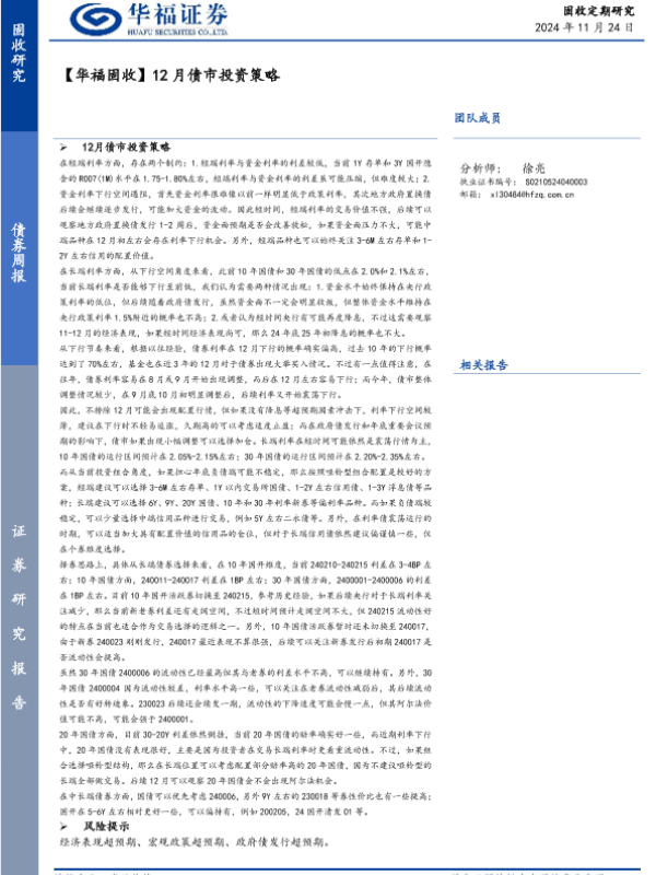 【华福证券】【20241124】【华福固收】12月债市投资策略-21页