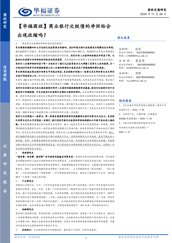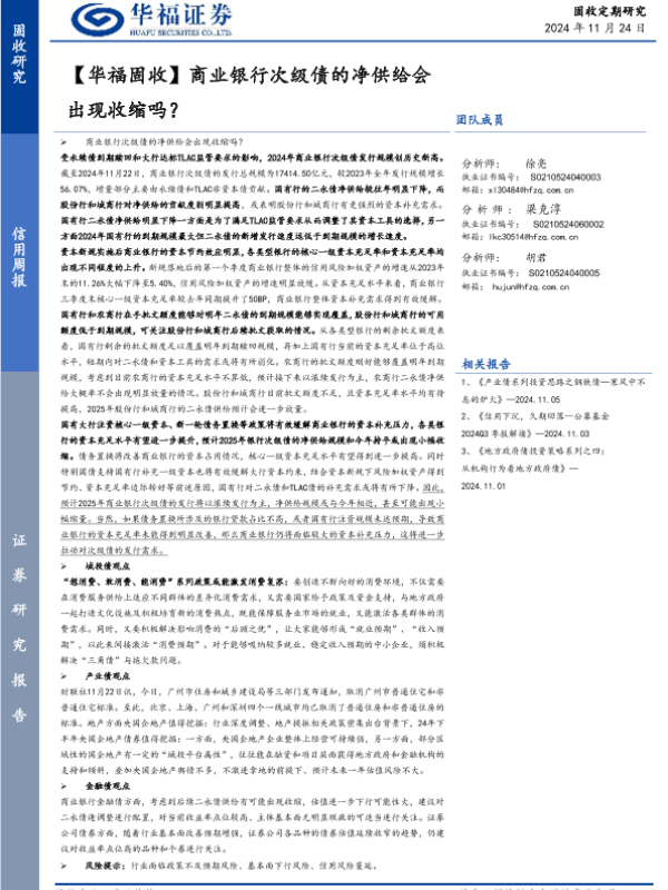 【华福证券】【20241124】商业银行次级债的净供给会出现收缩吗?-26页
