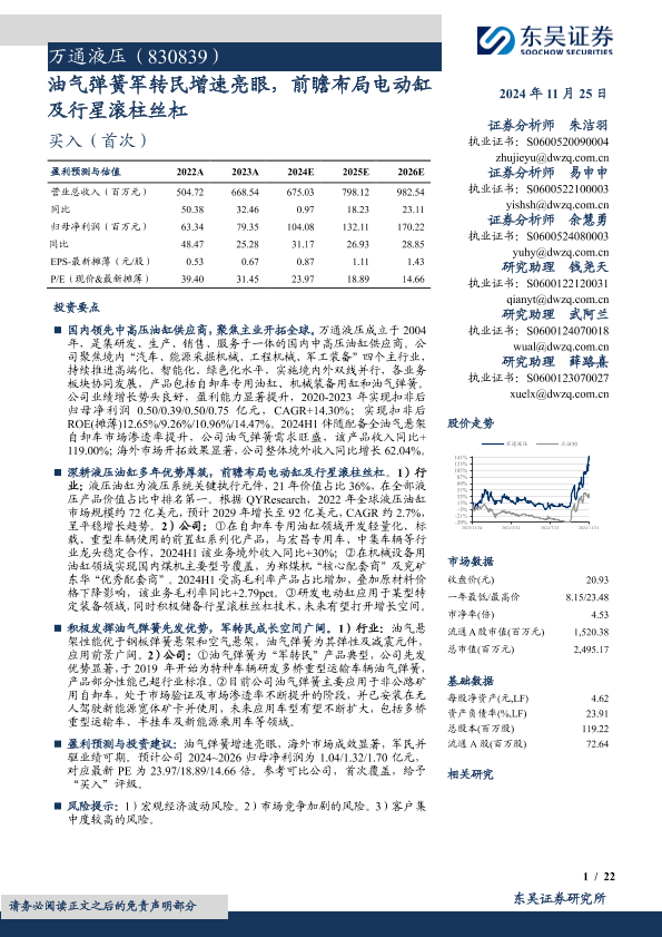 【东吴证券】【20241125】万通液压(830839)油气弹簧军转民增速亮眼,前瞻布局电动缸及行星滚柱丝杠-22页