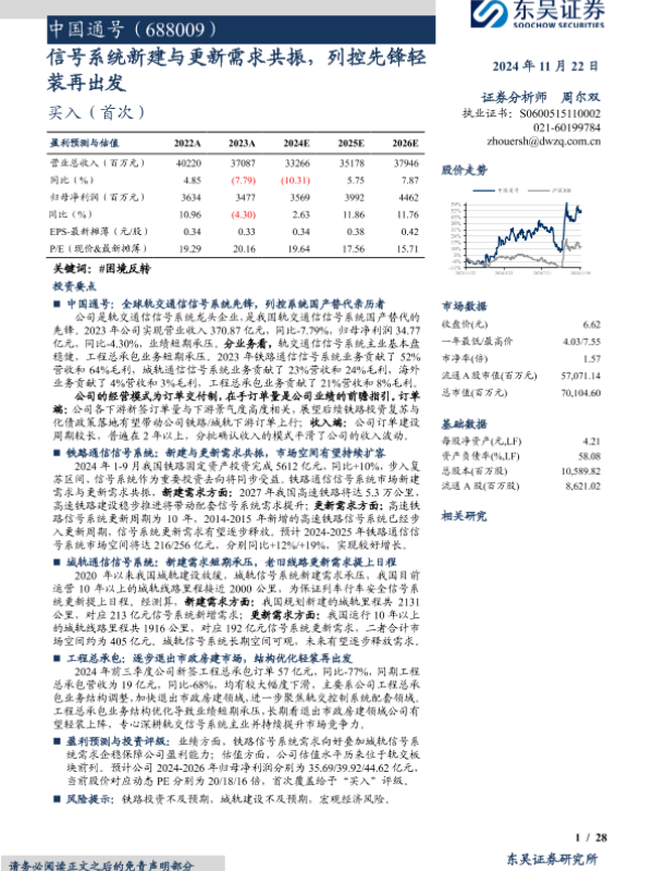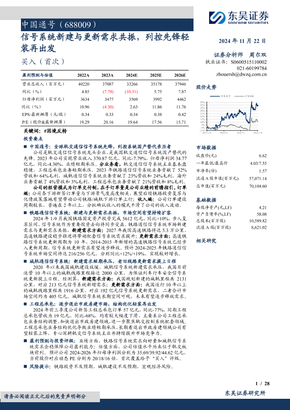 【东吴证券】【20241122】中国通号(688009)公司深度研究:信号系统新建与更新需求共振,列控先锋轻装再出发-26页