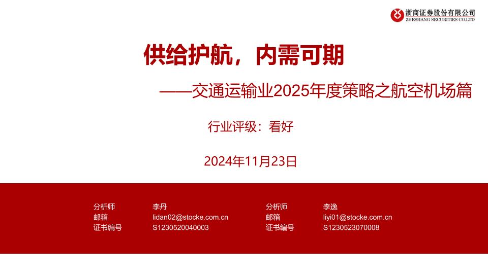【浙商证券】【20241123】交通运输业2025年度策略之航空机场篇:供给护航,内需可期-36页