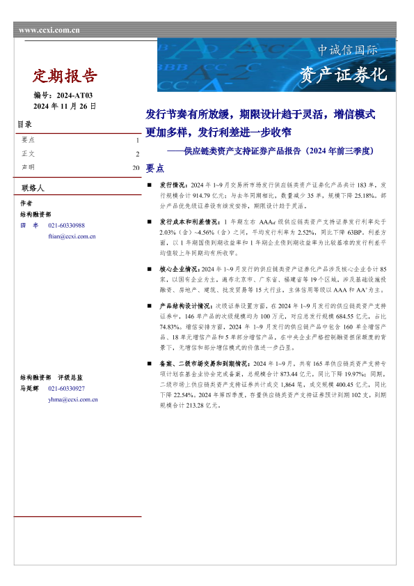 【中诚信国际】【20241126】类资产支持证券产品报告(2024年前三季度)-20页
