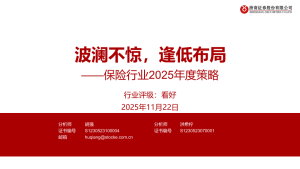 【浙商证券】【20241122】保险行业2025年度策略:波澜不惊,逢低布局-29页