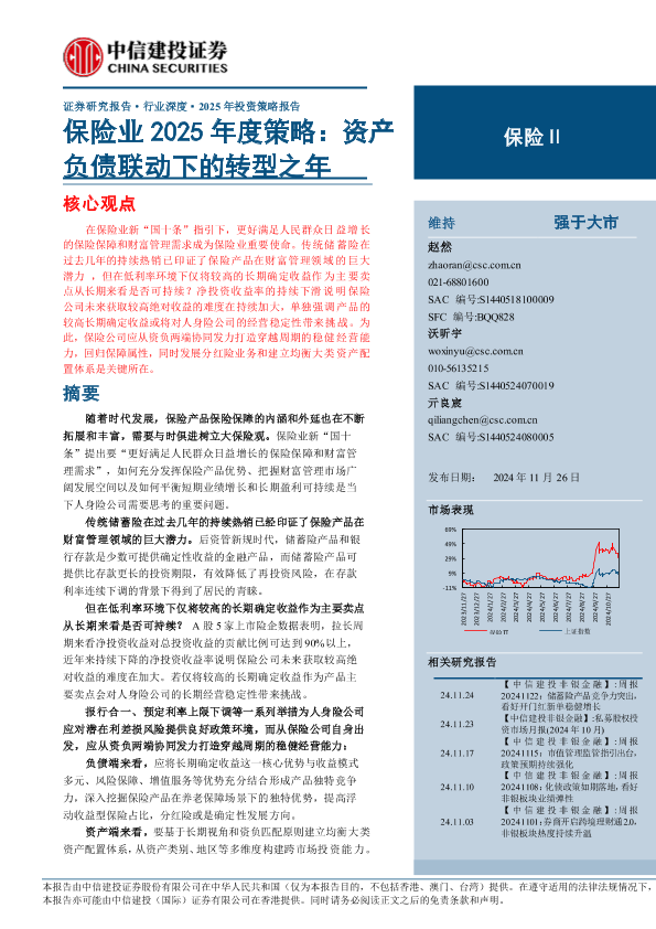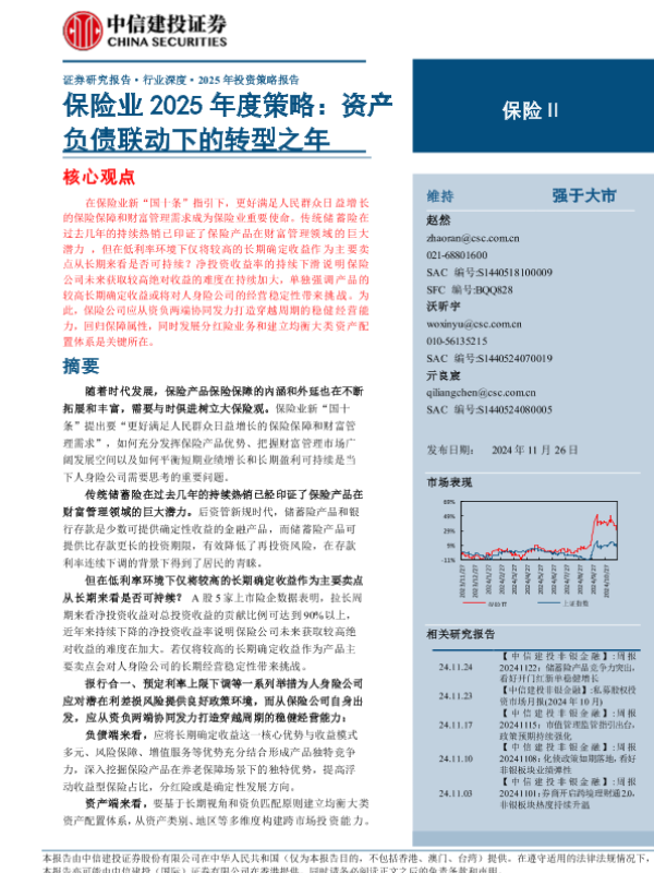 【中信建投证券】【20241126】保险行业深度·2025年投资策略报告:资产负债联动下的转型之年-39页