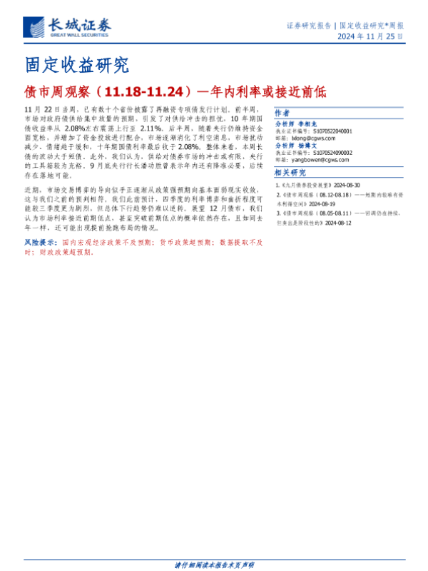 【长城证券】【20241125】债市观察:年内利率或接近前低-11页