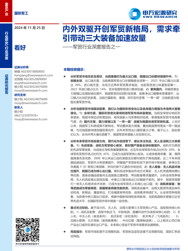 【申万宏源】【20241125】军贸行业深度报告之一:内外双驱开创军贸新格局,需求牵引带动三大装备加速放量-34页