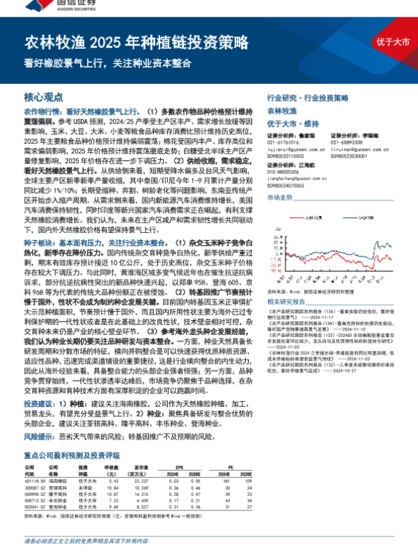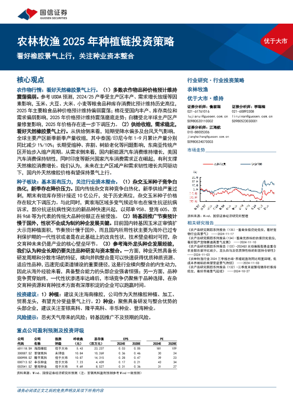 【国信证券】【20241124】农林牧渔行业2025年种植链投资策略:看好橡胶景气上行,关注种业资本整合-28页