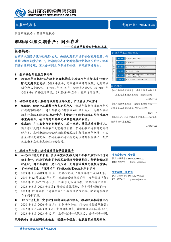 【东北证券】【20241128】同业存单投资分析框架上篇:解码核心短久期资产,同业存单-26页