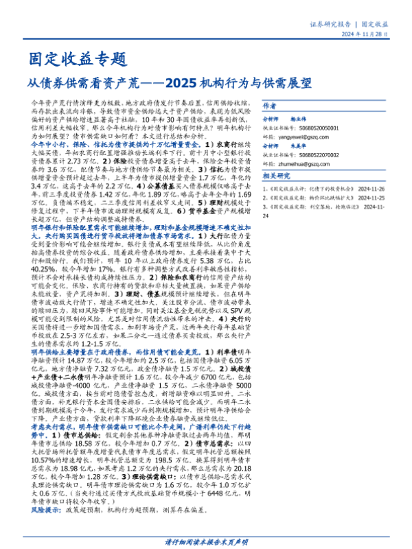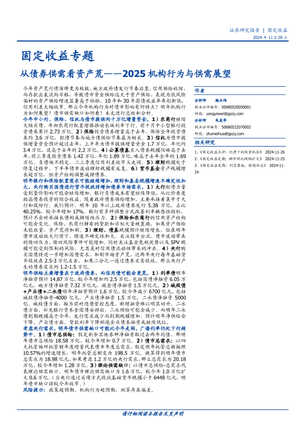 【国盛证券】【20241128】固定收益专题:2025机构行为与供需展望,从债券供需看资产荒-15页