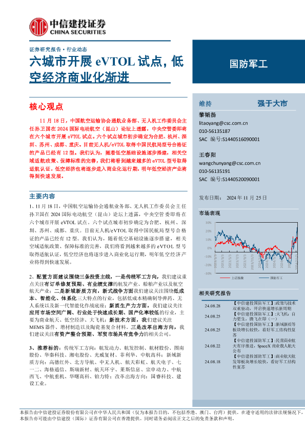 【中信建投证券】【20241125】国防军工行业:六城市开展eVTOL试点,低空经济商业化渐进-23页