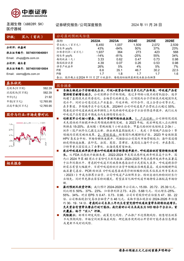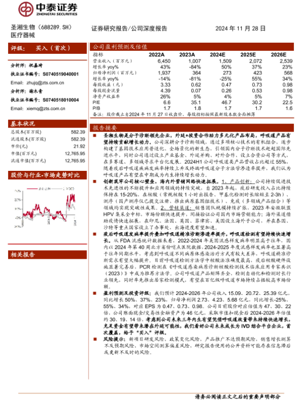 【中泰证券】【20241128】圣湘生物(688289)呼吸道检测有望持续放量,外延探索平台化发展-19页