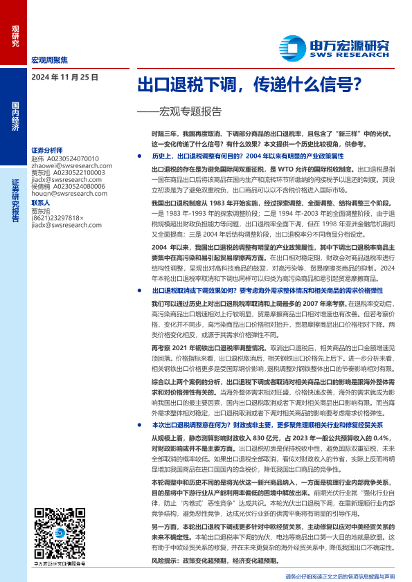 【申万宏源】【20241125】宏观专题报告:出口退税下调,传递什么信号?-17页