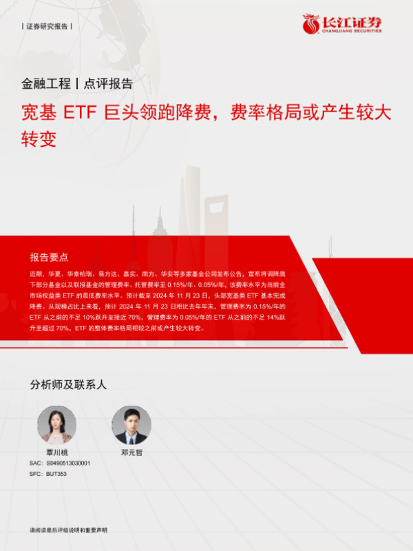 【长江证券】【20241125】宽基ETF巨头领跑降费,费率格局或产生较大转变-10页