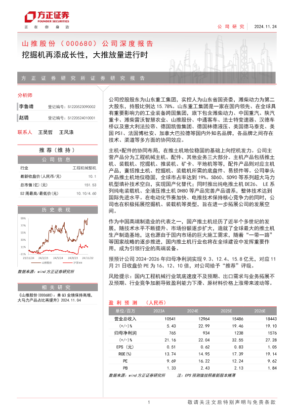 【方正证券】【20241124】山推股份(000680)公司深度报告:挖掘机再添成长性,大推放量进行时-20页