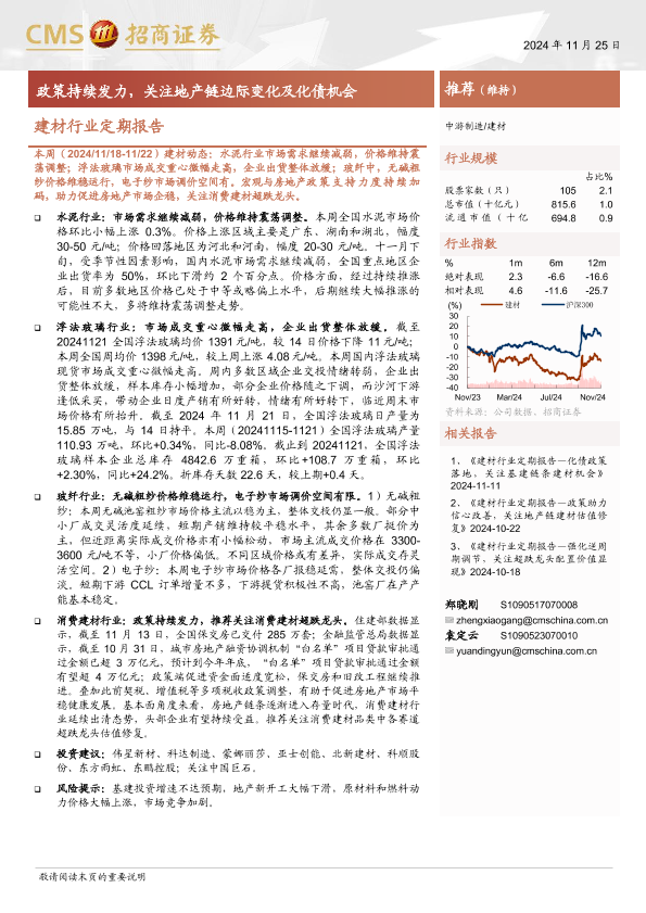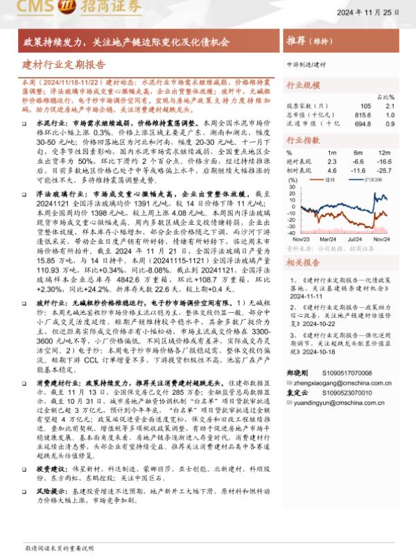 【海通证券】【20241125】建材行业定期报告:政策持续发力,关注地产链边际变化及化债机会-26页