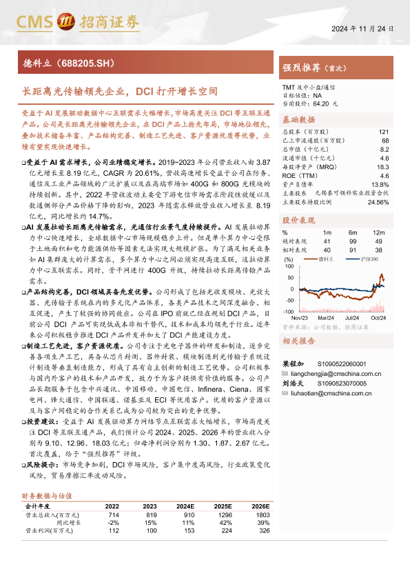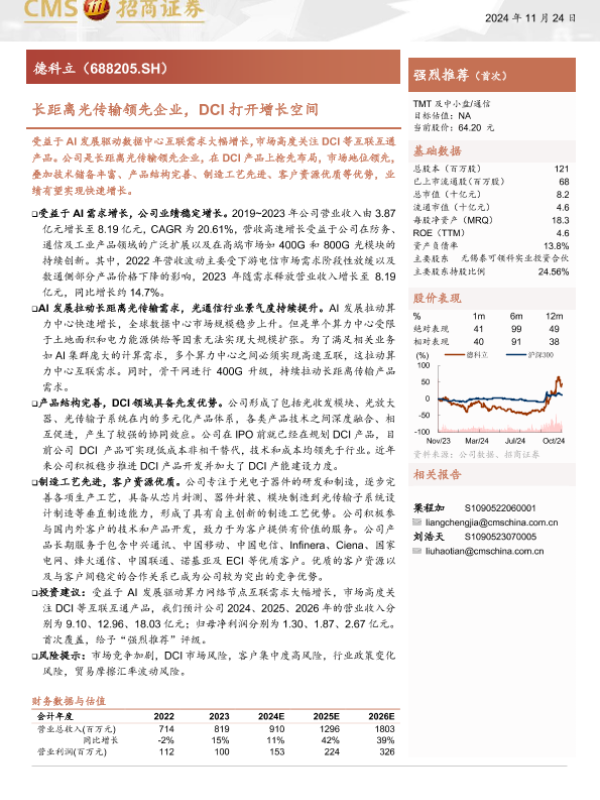 【海通证券】【20241124】德科立(688205)长距离光传输领先企业,DCI打开增长空间-27页