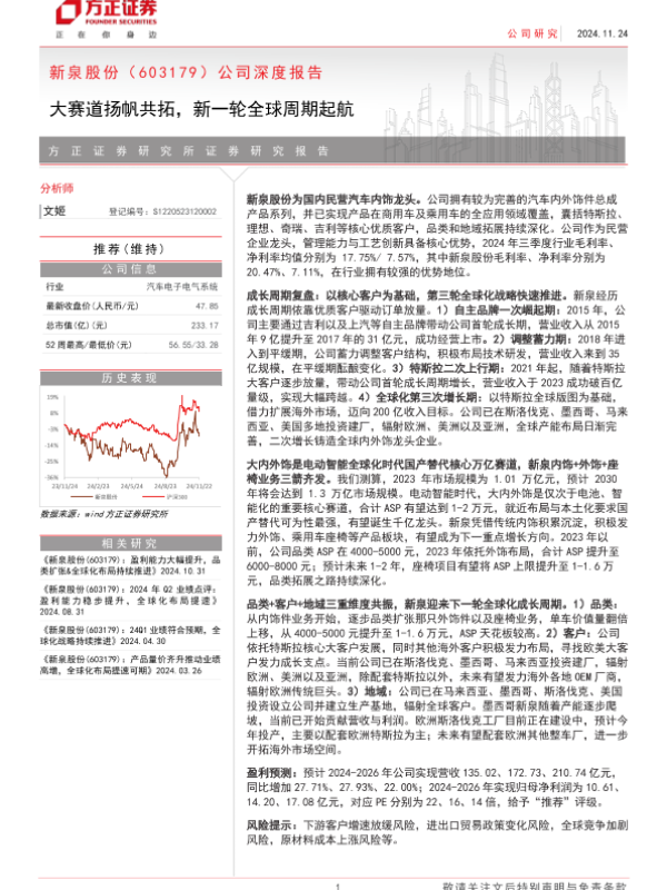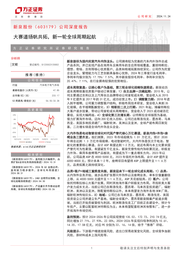 【方正证券】【20241124】新泉股份(603179)公司深度报告:大赛道扬帆共拓,新一轮全球周期起航-33页