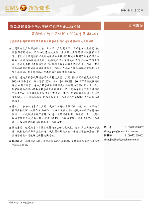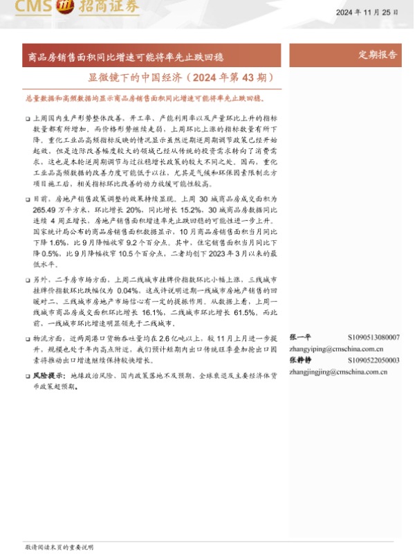 【海通证券】【20241125】显微镜下的中国经济(2024年第43期):商品房销售面积同比增速可能将率先止跌回稳-38页