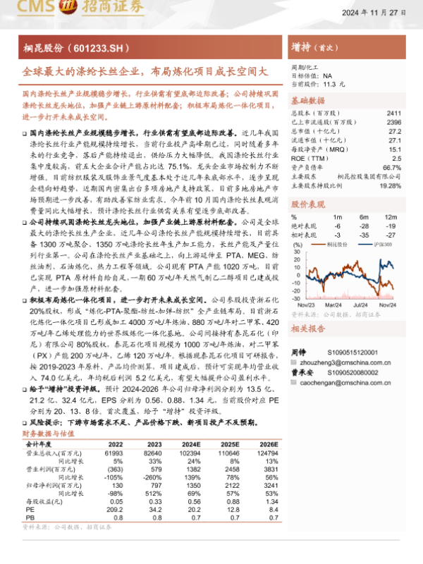 【海通证券】【20241127】桐昆股份(601233)全球最大的涤纶长丝企业,布局炼化项目成长空间大-20页