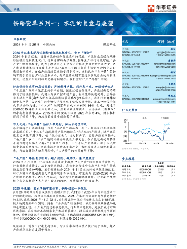 【华泰证券】【20241125】水泥行业深度研究:供给变革系列一,水泥的复盘与展望-28页