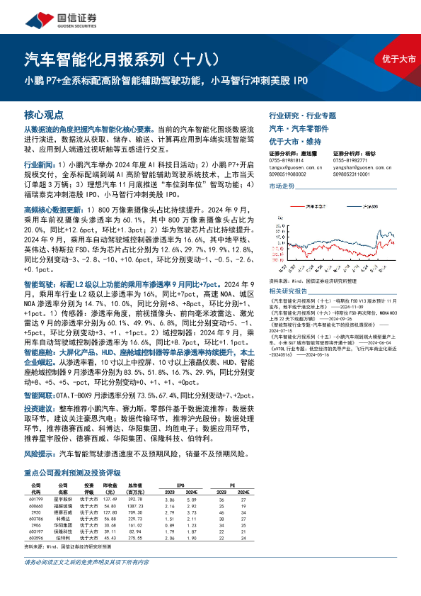 【国信证券】【20241126】汽车行业智能化月报系列(十八):小鹏P7+全系标配高阶智能辅助驾驶功能,小马智行冲刺美股IPO-62页