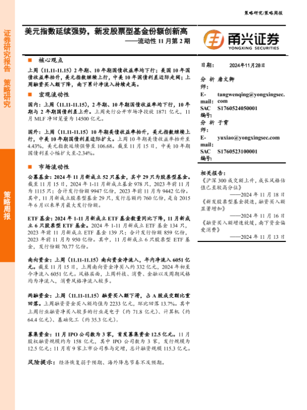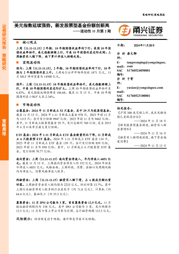 【甬兴证券】【20241128】流动性11月第2期:美元指数延续强势,新发股票型基金份额创新高-10页