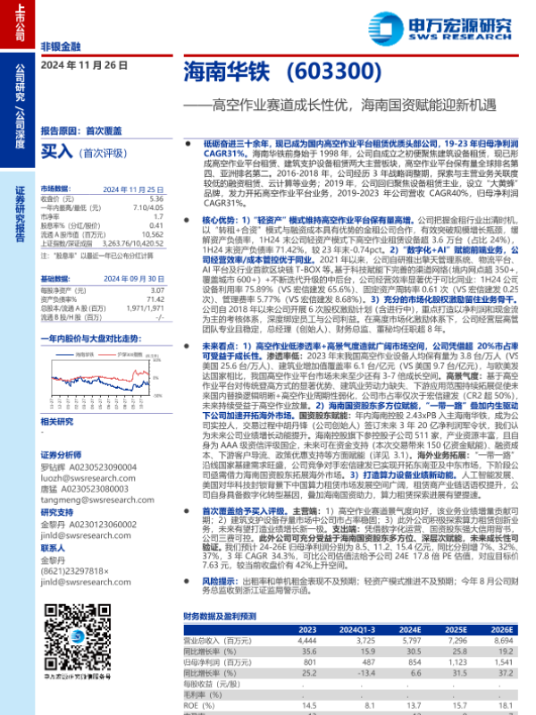 【申万宏源】【20241126】海南华铁(603300)高空作业赛道成长性优,海南国资赋能迎新机遇-34页
