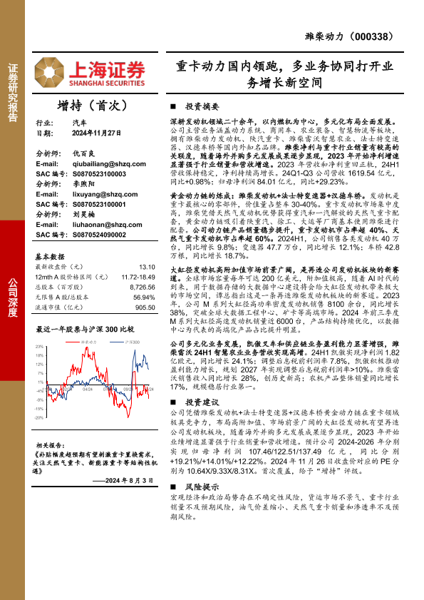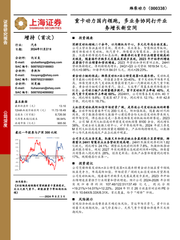 【上海证券】【20241127】潍柴动力(000338)重卡动力国内领跑,多业务协同打开业务增长新空间-28页