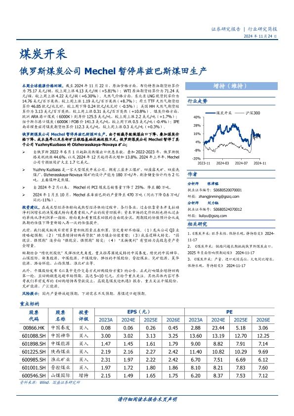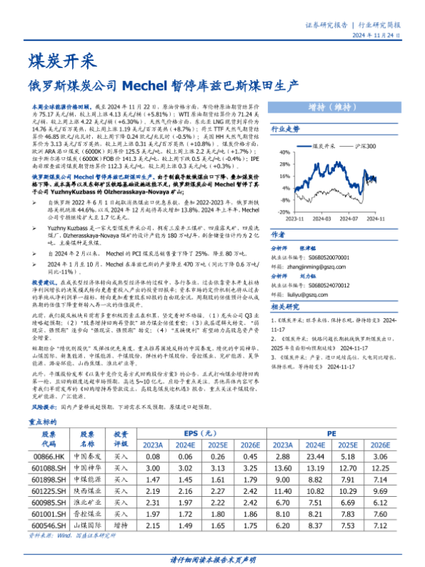 【国盛证券】【20241124】煤炭开采行业研究简报:俄罗斯煤炭公司Mechel暂停库兹巴斯煤田生产-11页