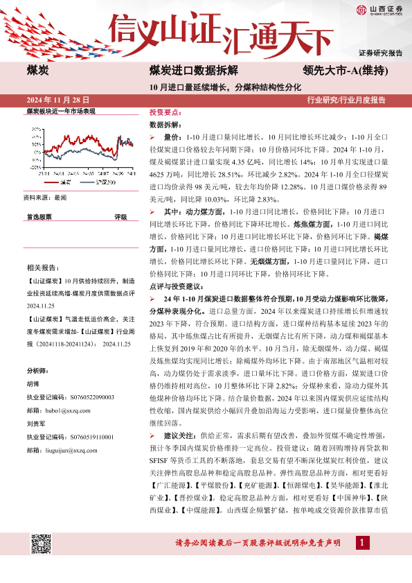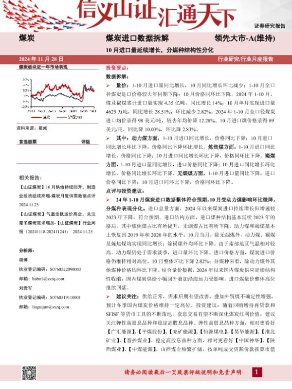 【山西证券】【20241128】煤炭行业进口数据拆解:10月进口量延续增长,分煤种结构性分化-13页