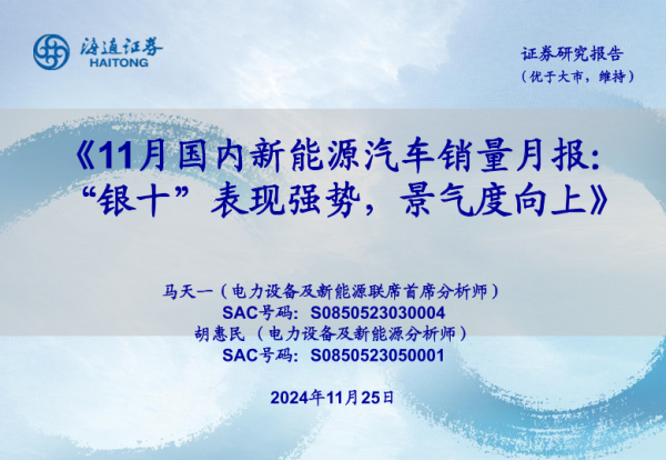 【海通证券】【20241125】11月国内新能源汽车销量月报:“银十”表现强势,景气度向上-21页