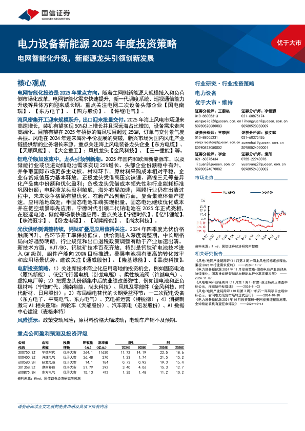 【国信证券】【20241126】电力设备新能源行业2025年度投资策略:电网智能化升级,新能源龙头引领创新发展-22页