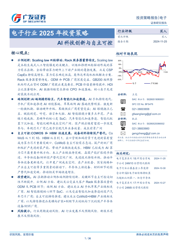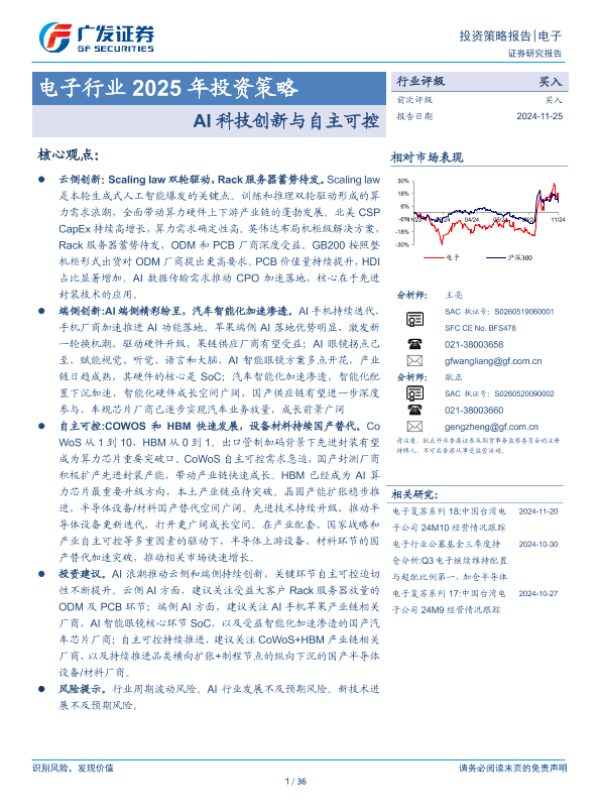 【广发证券】【20241125】电子行业2025年投资策略:AI科技创新与自主可控-36页