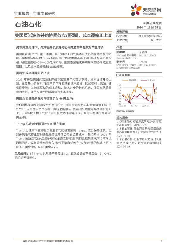 【天风证券】【20241125】石油石化行业专题研究:美国页岩油收并购协同效应超预期,成本通缩正上演-13页