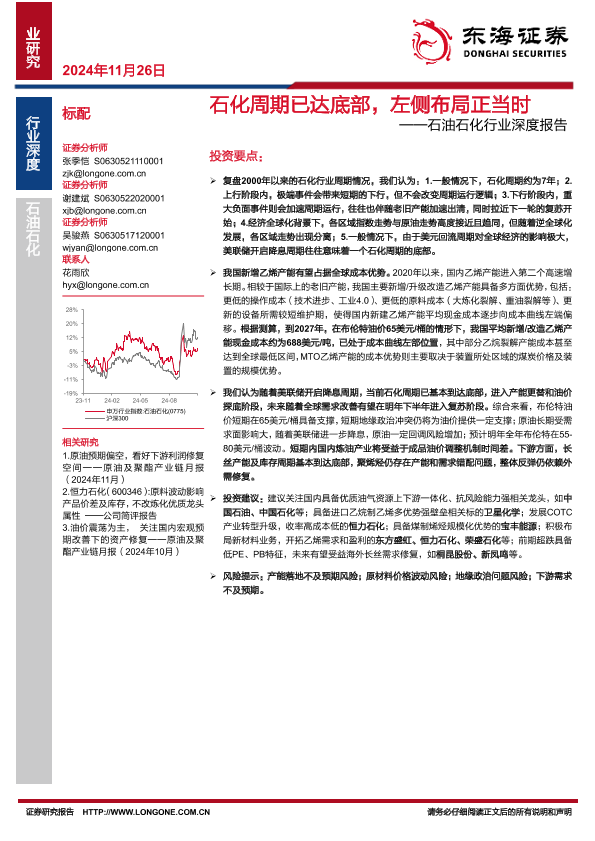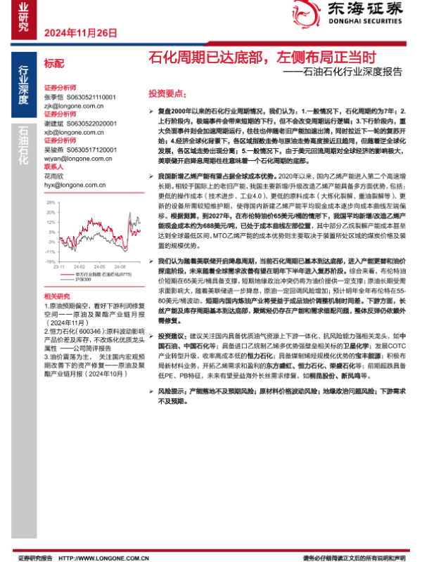 【东海证券】【20241126】石油石化行业深度报告:石化周期已达底部,左侧布局正当时-24页