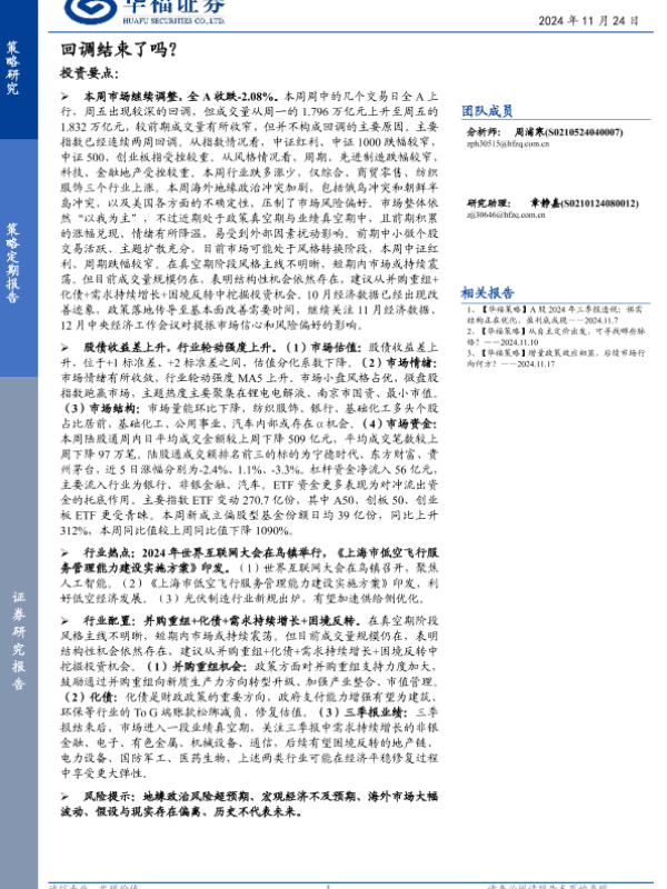 【华福证券】【20241124】策略定期研究:回调结束了吗?-11页